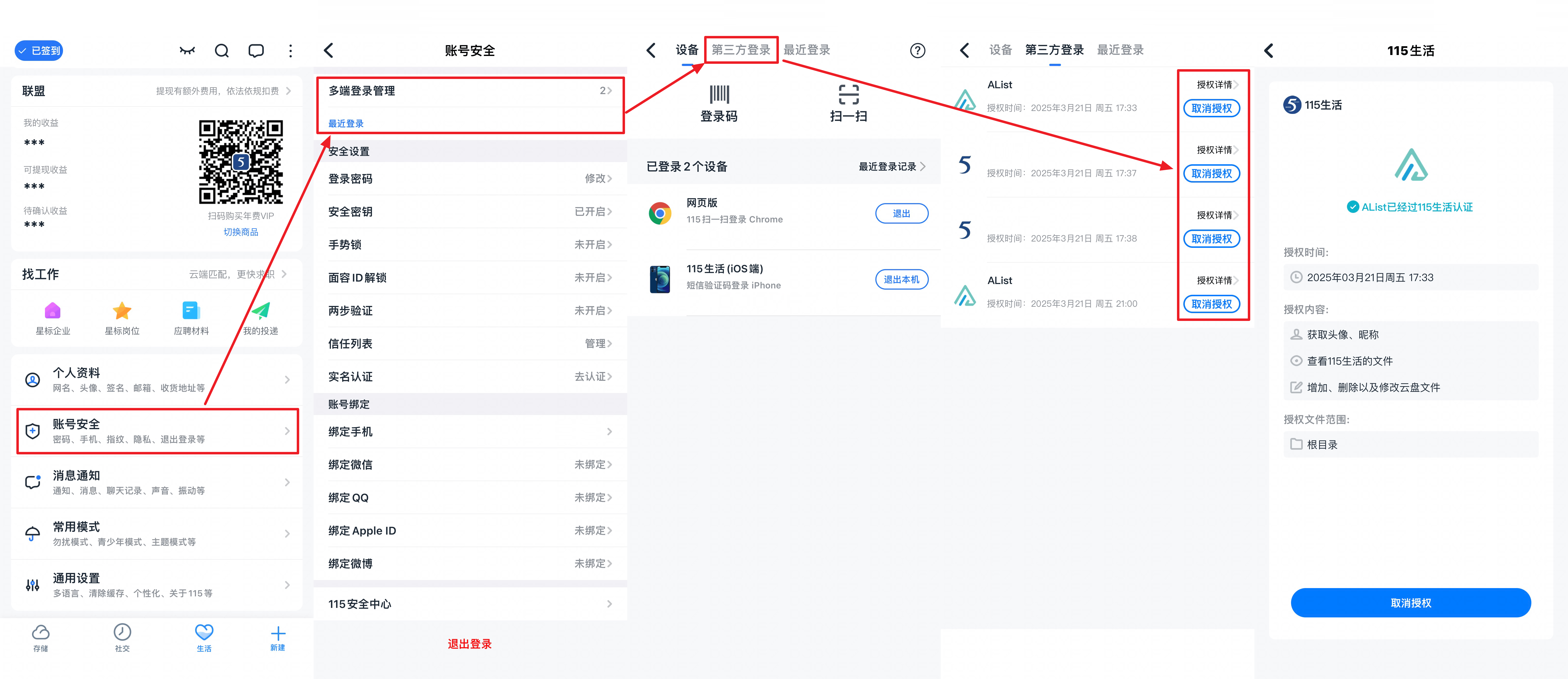 If you accidentally leak the Token, you can go to 115 Device Login Management to deauthorize the app.