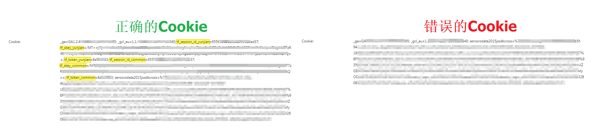 The cookies that can be used are those that need to carry the tf_x parameter. In the example in the figure, the one on the left can be used, but the one on the right cannot be used.