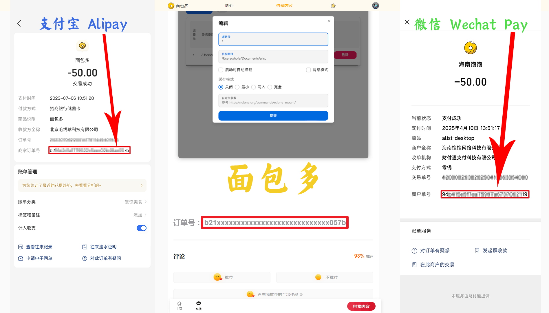 - Alipay Bills ==> Merchant Order No.